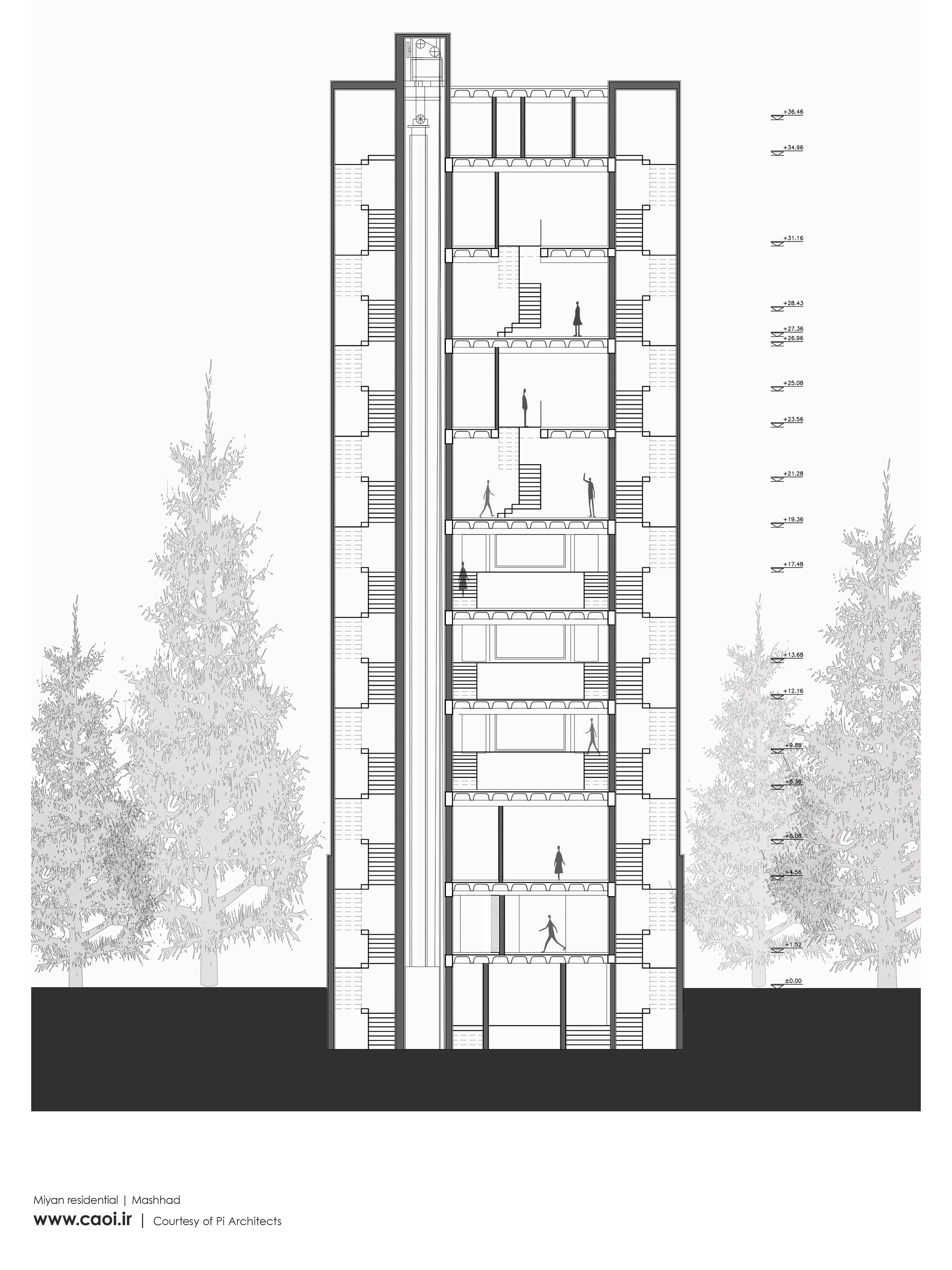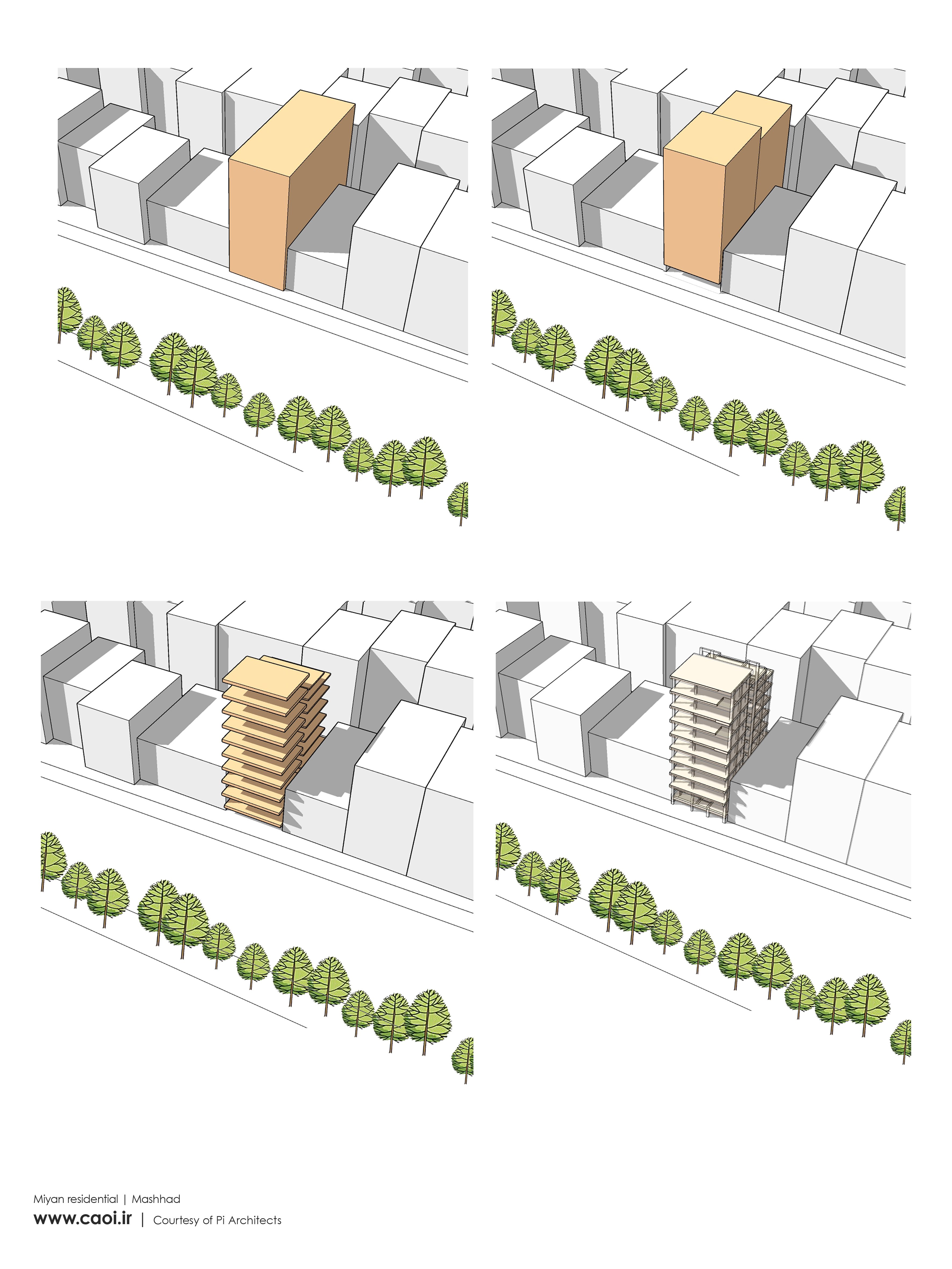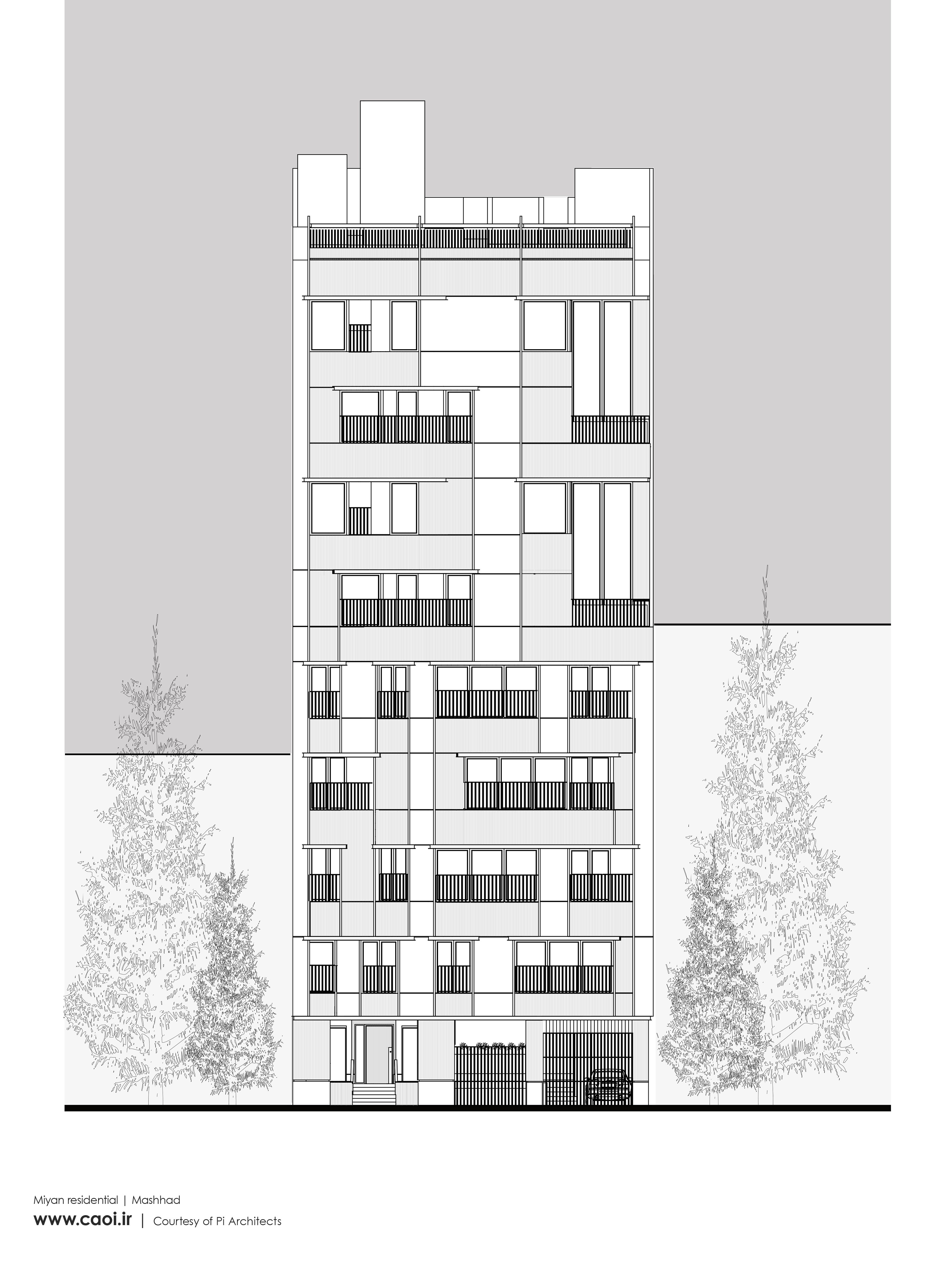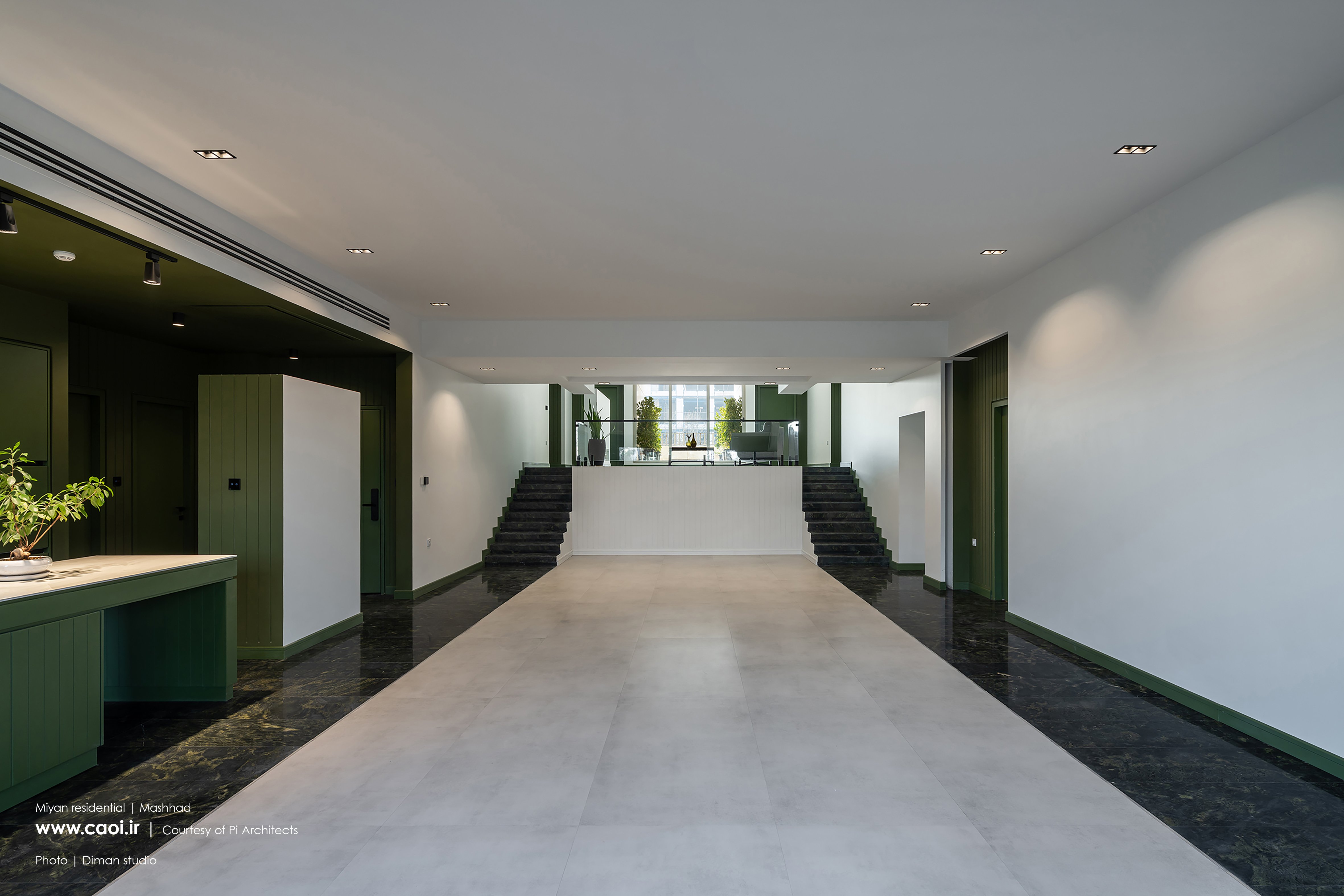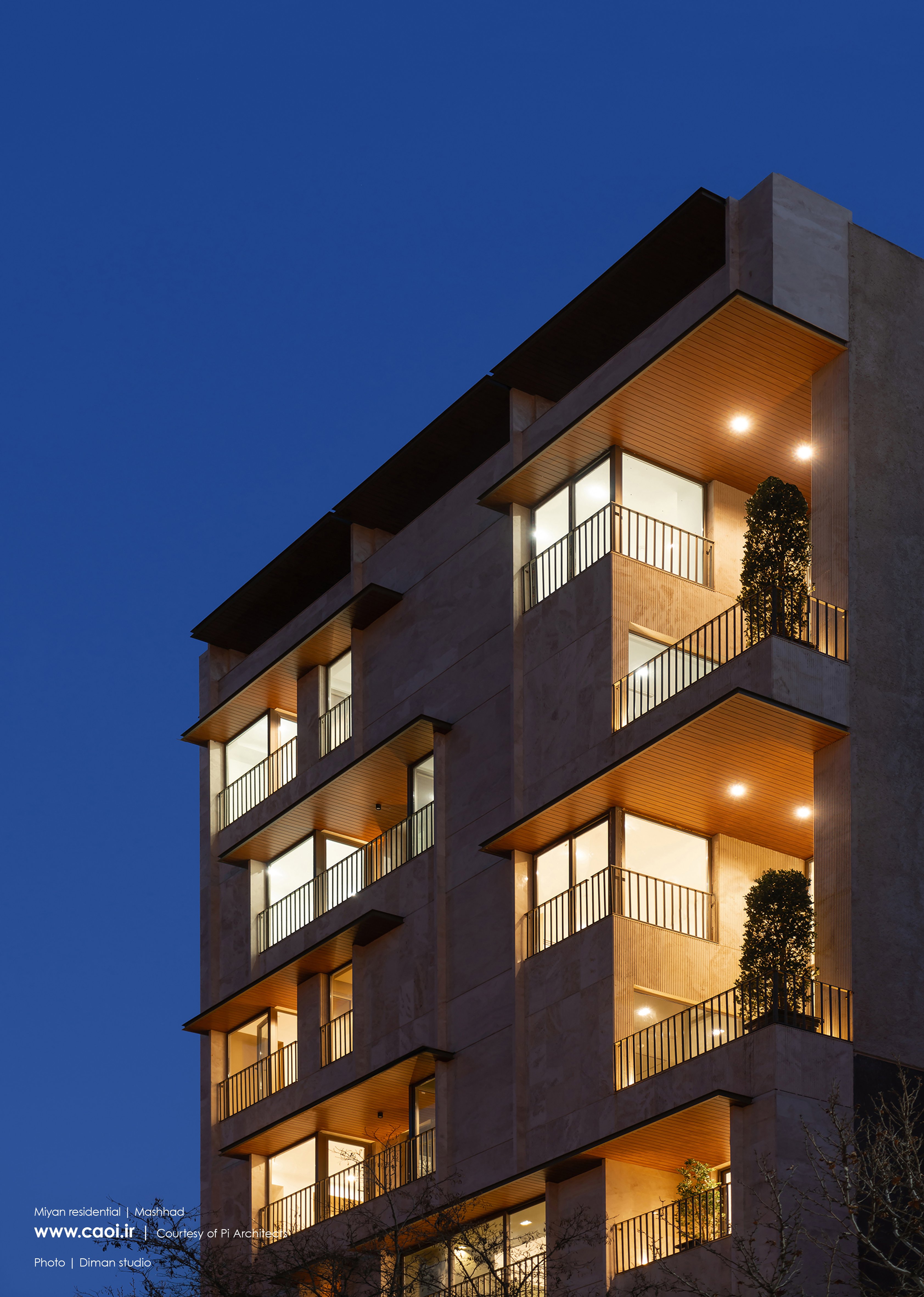 پروژه مسکونی میان ، در یکی از محورهای مواصلاتی شهر مشهد، بزرگراه کلانتری واقع شده است. پروژه در تلاش بوده تا با نگاهی دیگر به مسکن شهری، از کلیشه های رایج فاصله بگیرد و ساختاری متفاوت را در قالب یک ساختمان ۹ واحدی ارائه دهد.