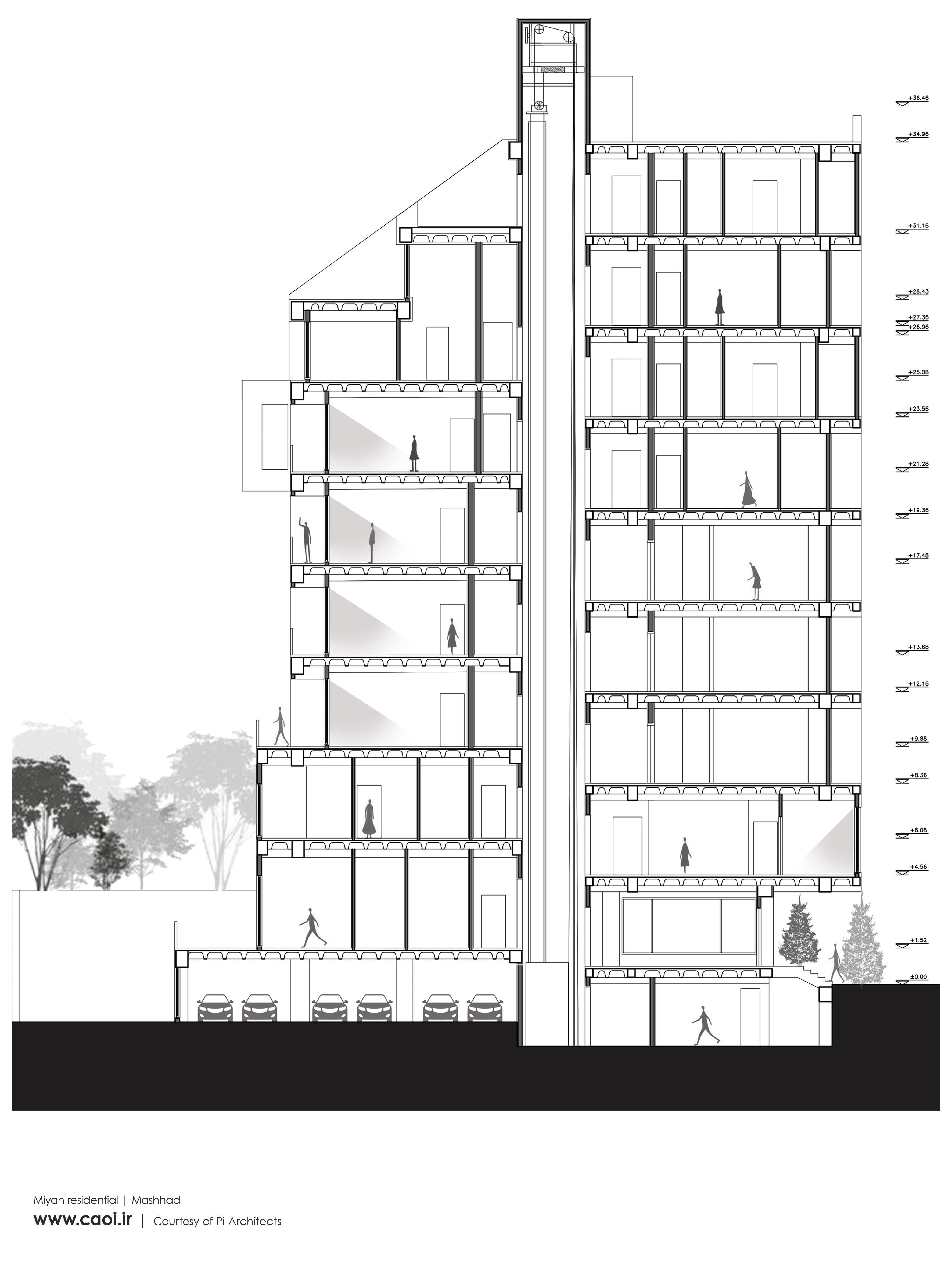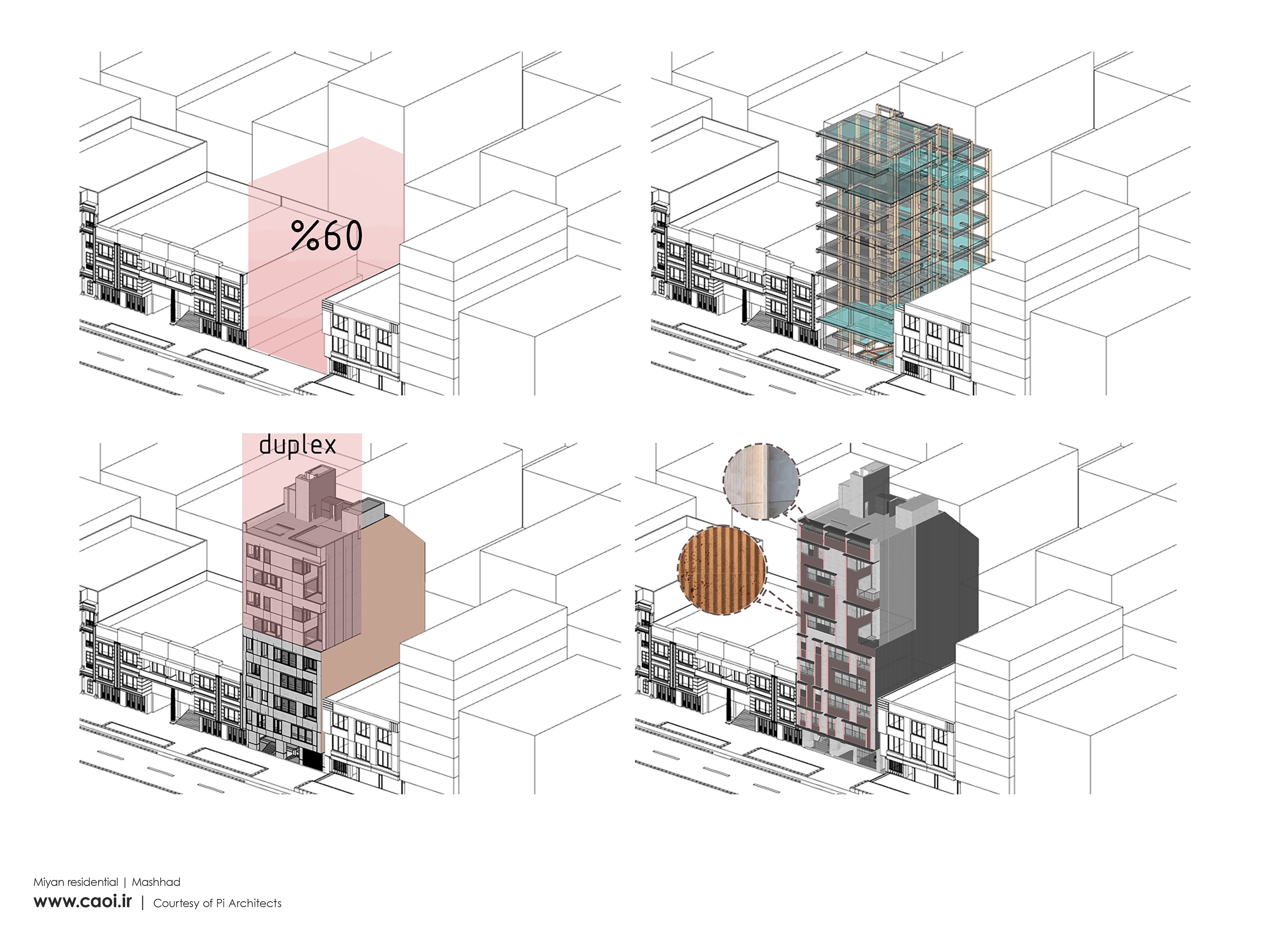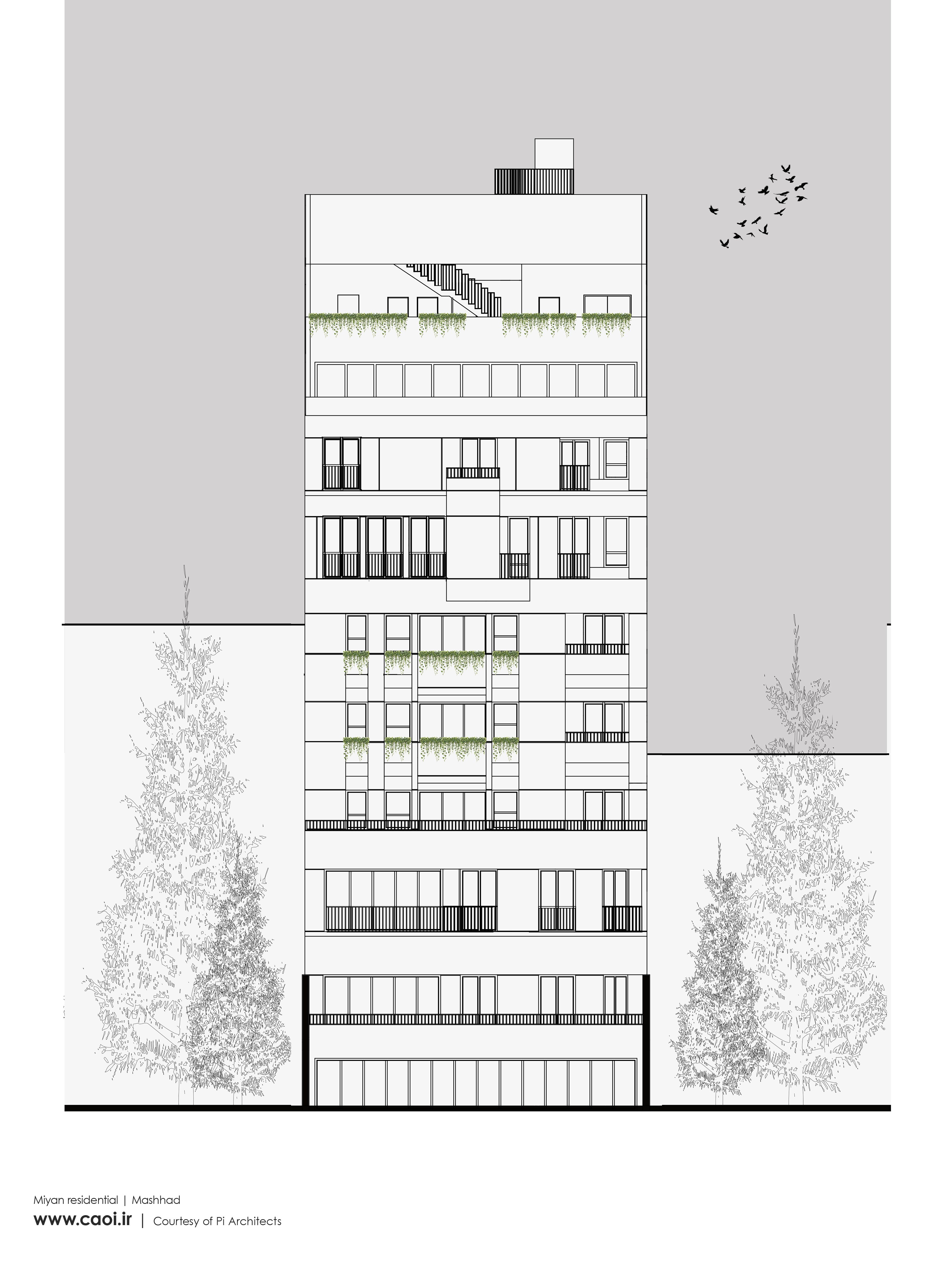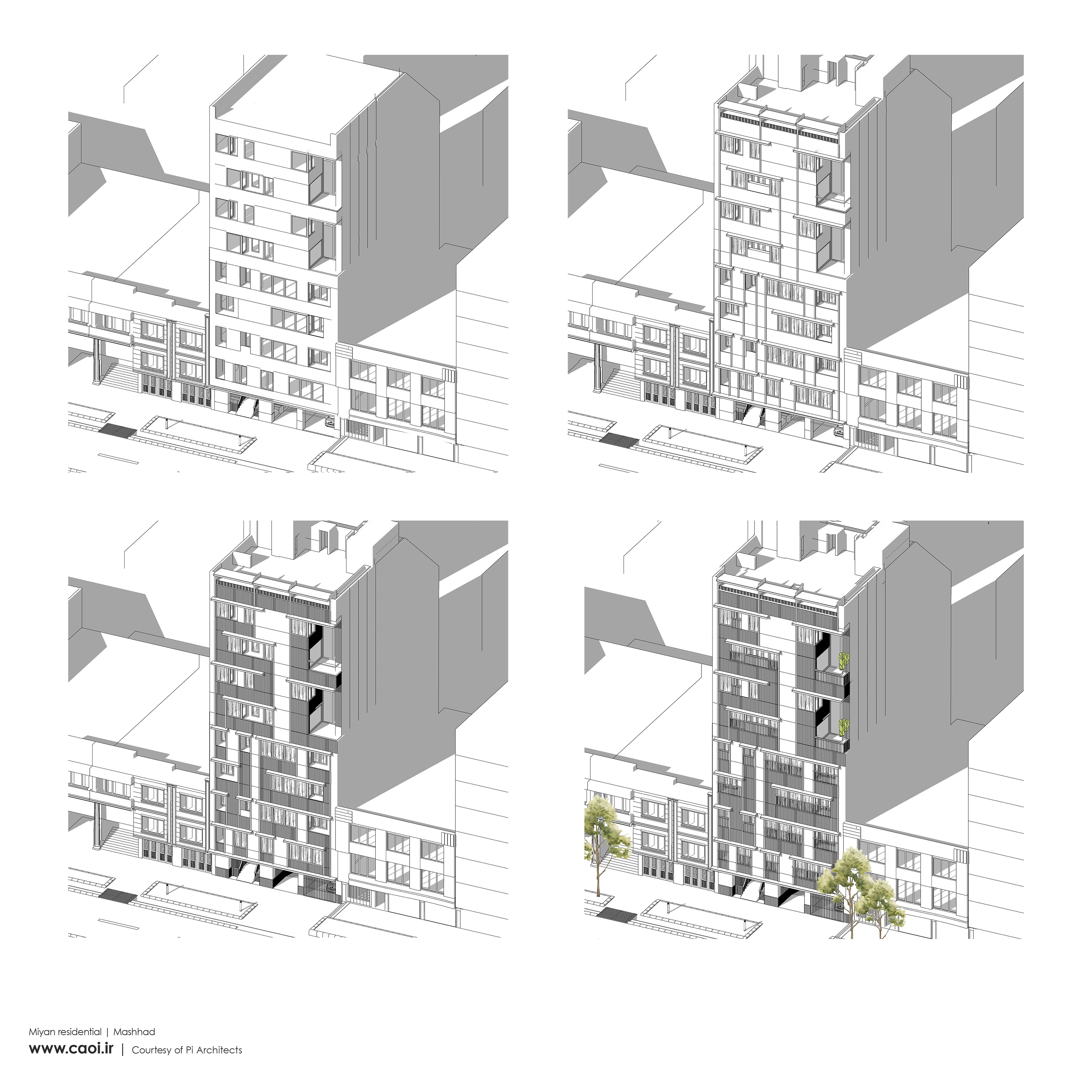 پروژه مسکونی میان ، در یکی از محورهای مواصلاتی شهر مشهد، بزرگراه کلانتری واقع شده است. پروژه در تلاش بوده تا با نگاهی دیگر به مسکن شهری، از کلیشه های رایج فاصله بگیرد و ساختاری متفاوت را در قالب یک ساختمان ۹ واحدی ارائه دهد.